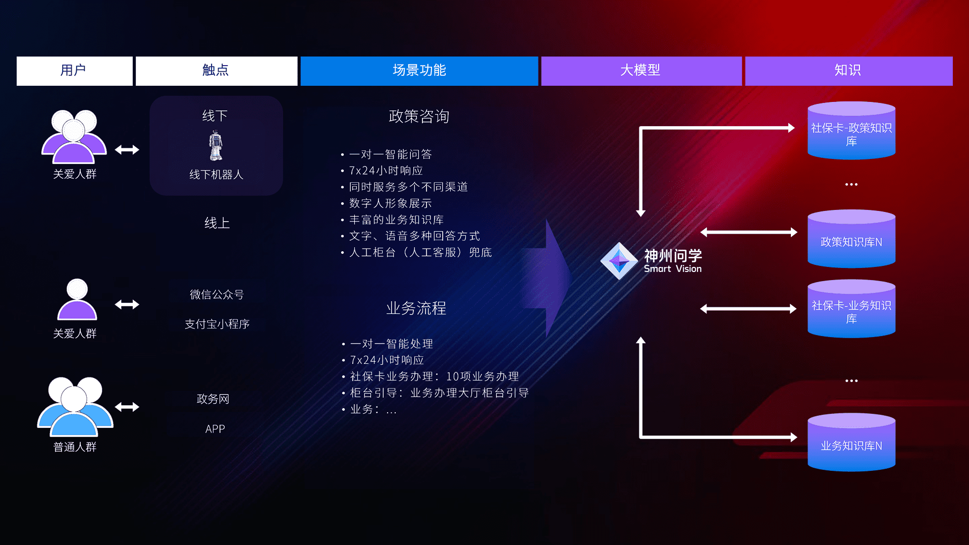 在服务大厅部署客服机器人,,,在线上应用和小程序配置客服数字人,,,724小时为群众解答常规问题,,,,客服机器人无法处理的,,,转现场人工处理。。